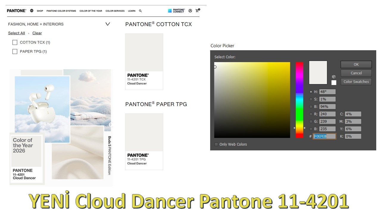 Pantone 2026 yılı rengi (Cloud Dancer-Pantone 11-4201) anons edildiği anda, benden önce erişmenin keyfiyle veya belki ortak noktamızı sağlamlaştırmak adına danışanlardan ve arkadaşlardan ve akrabalardan gelen görseller, sorular eşliğinde iletişim kanallarıma doldu. Sadece ne düşündüğümü soranlar değil, pek spesifik sorularını iletenler de oldu. Çok teşekkür ederim beni zihninizde konumlandırdığınız otorite sahibimsi yere ve ilginize...